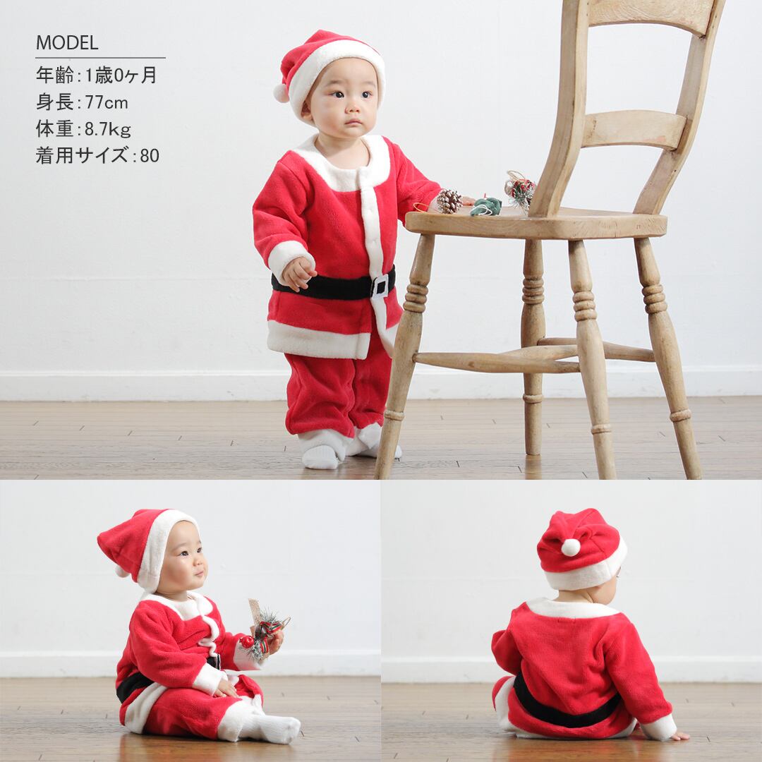 ふわふわの手触りのサンタクロースのロンパースと帽子のセット。