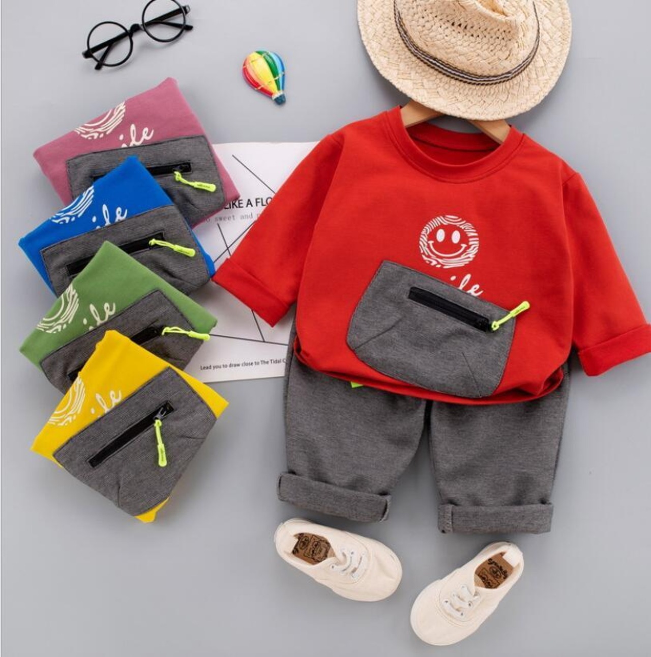 【2点セット 子供服 ベビー服 アパレル 長袖 tシャツ +スラックス 男の子 80-110cm