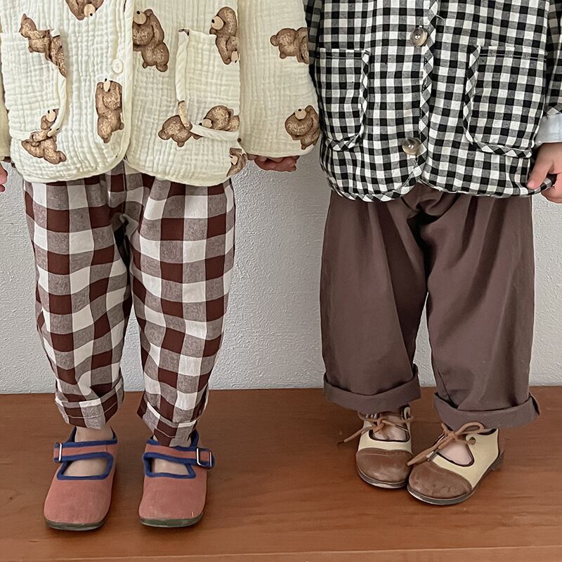 韓国子供服 子供服 キッズ服 春 ズボン 小熊格子 ワイドパンツ 薄い カジュアルパンツ 男女兼用