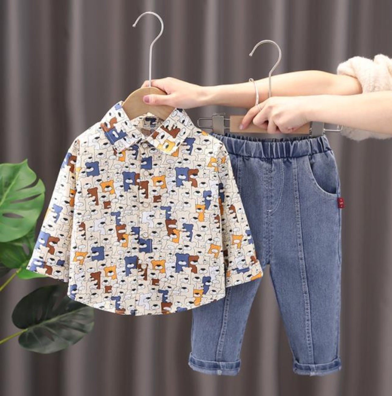 【2点セット】2022春新作 子供服 ベビー服 アパレル 長袖 シャツ+ スラックス 男の子