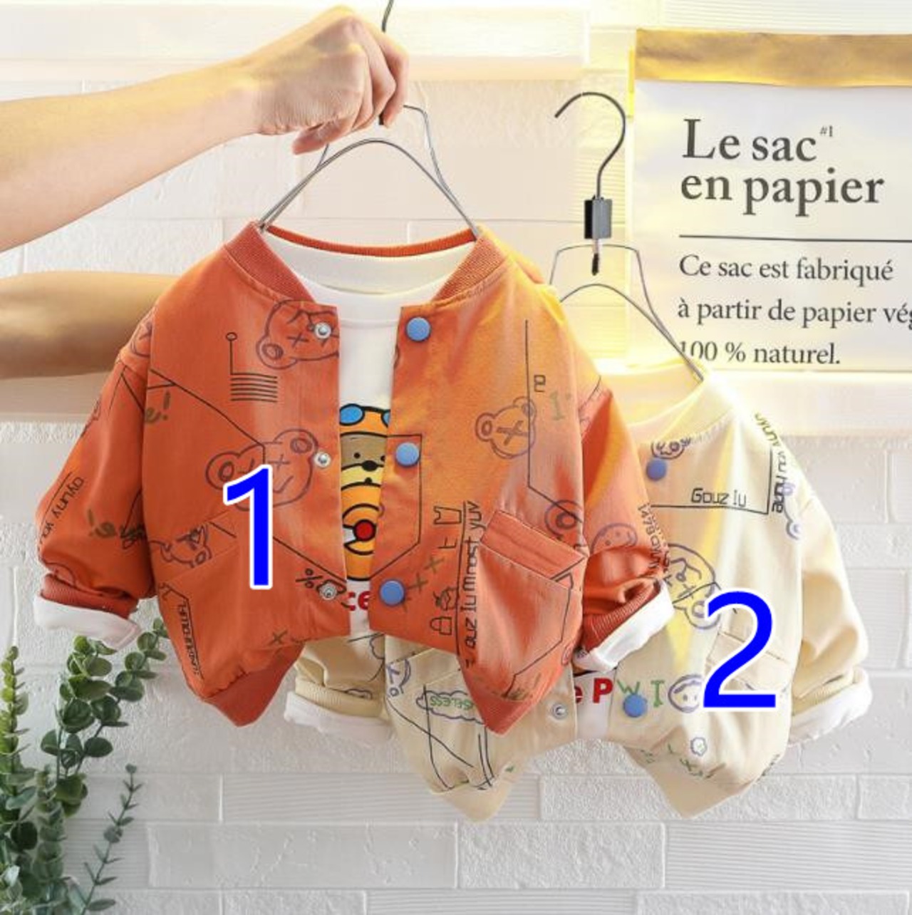 【3点セット】2022春新作 子供服 ベビー服 アパレル 長袖 コート+tシャツ+ スラックス 男の子