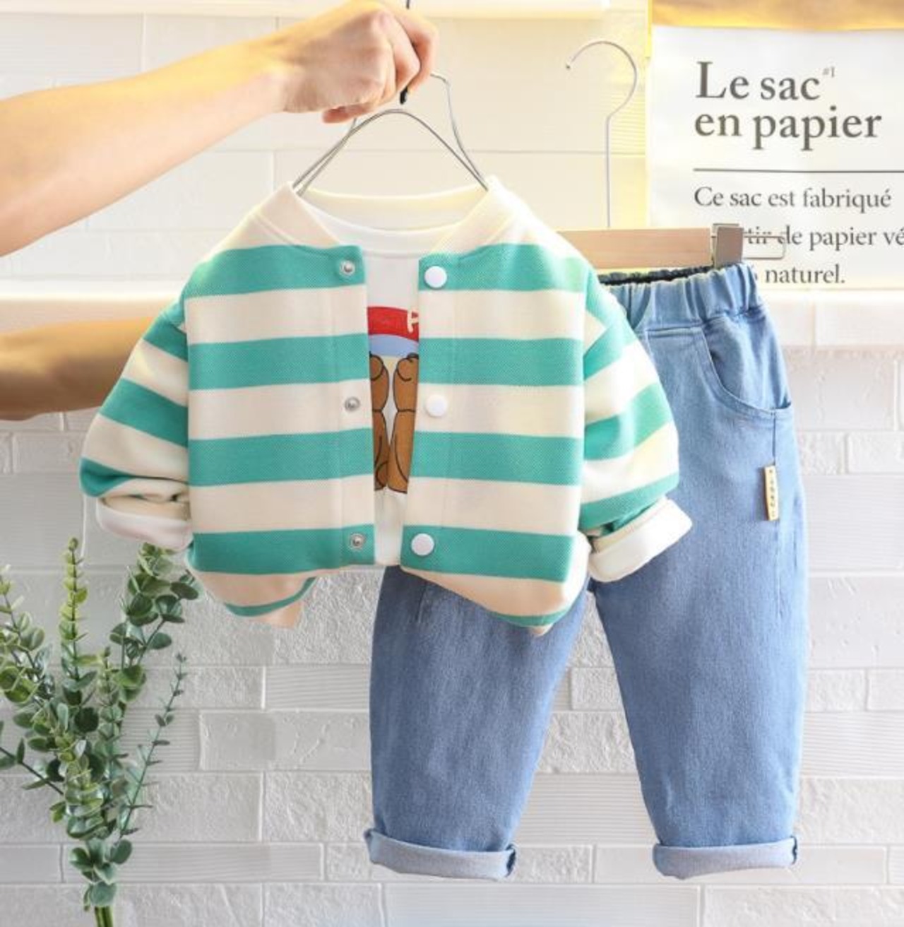 【3点セット】2022春新作 子供服 ベビー服 アパレル 長袖 コート+スウェット+ スラックス 男の子