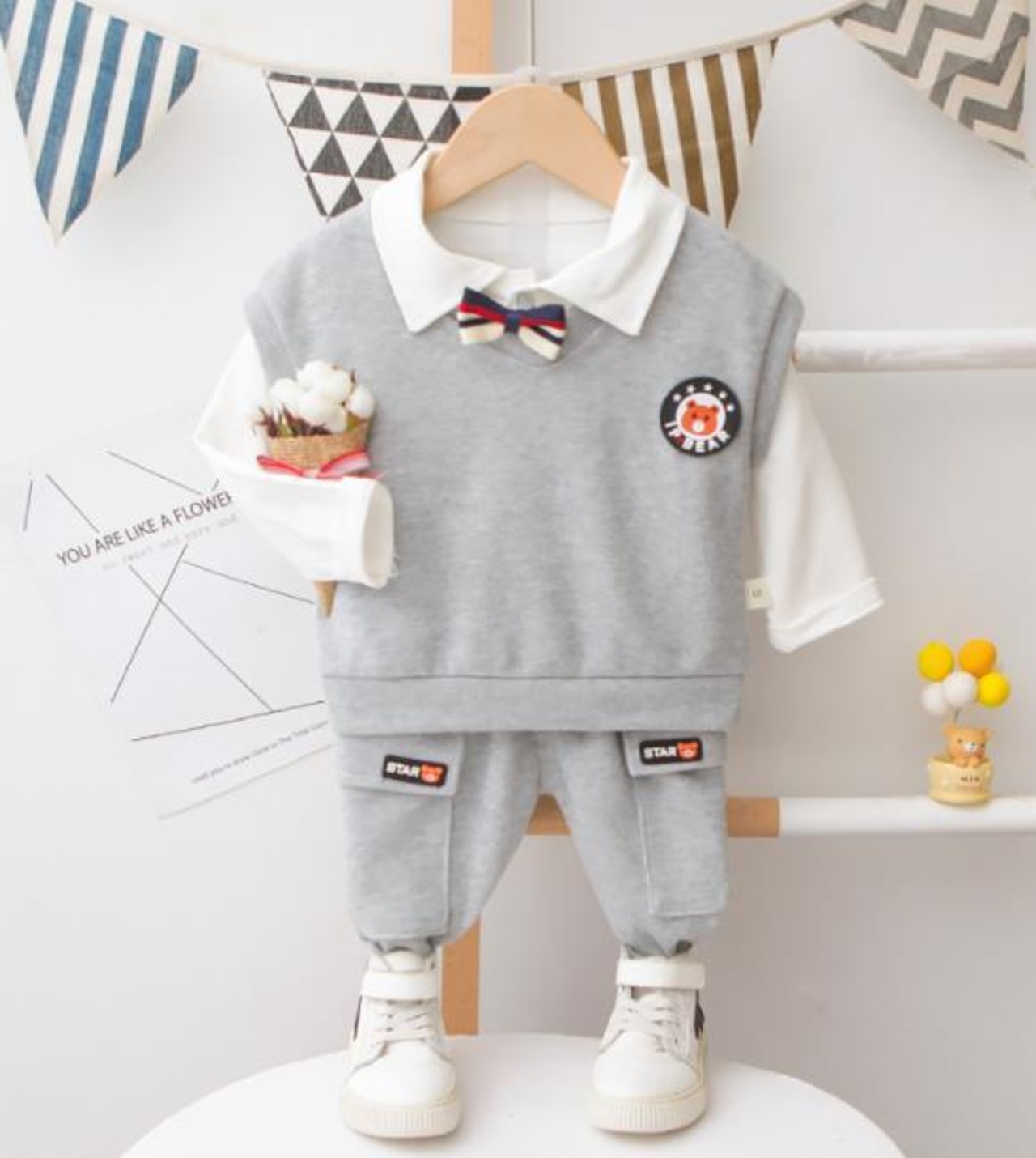 【3点セット】2022春新作 子供服 ベビー服 アパレル 長袖 シャツ+ベスト+ スラックス 男の子