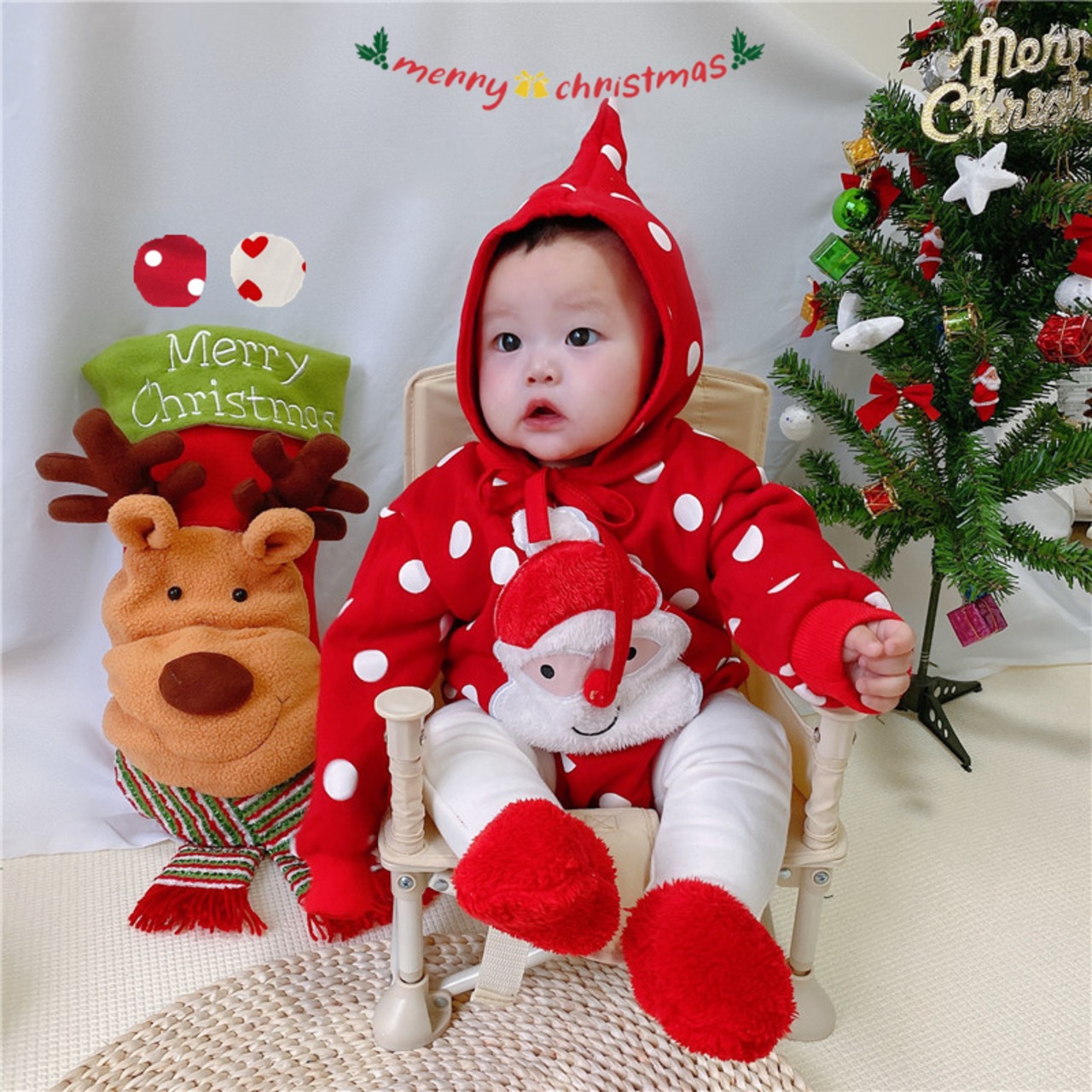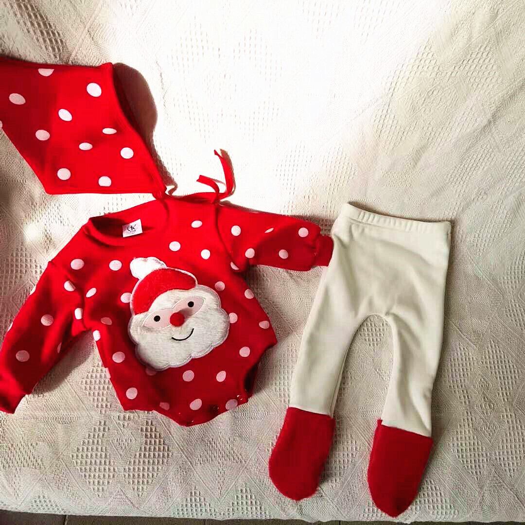 ins大人気 子供服 クリスマス 裏起毛 ロンパース 帽子付き 2点セット サンタ服 ベビー服 可愛い