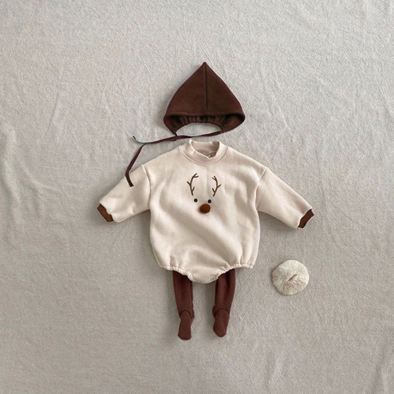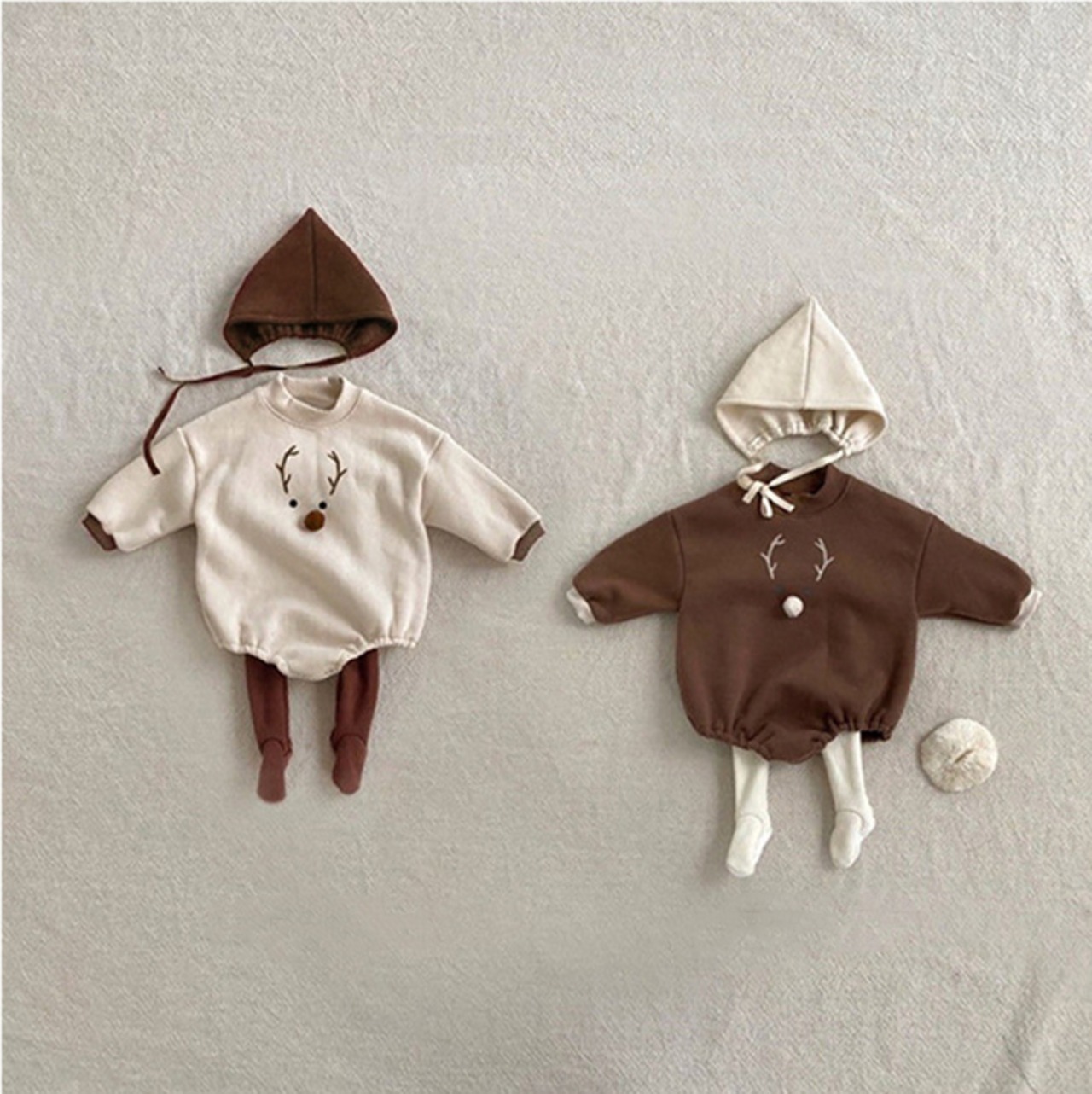 ins大人気 クリスマス ベビー服 トナカイ ロンパース 帽子付き 2点セット サンタ服 カバーオール