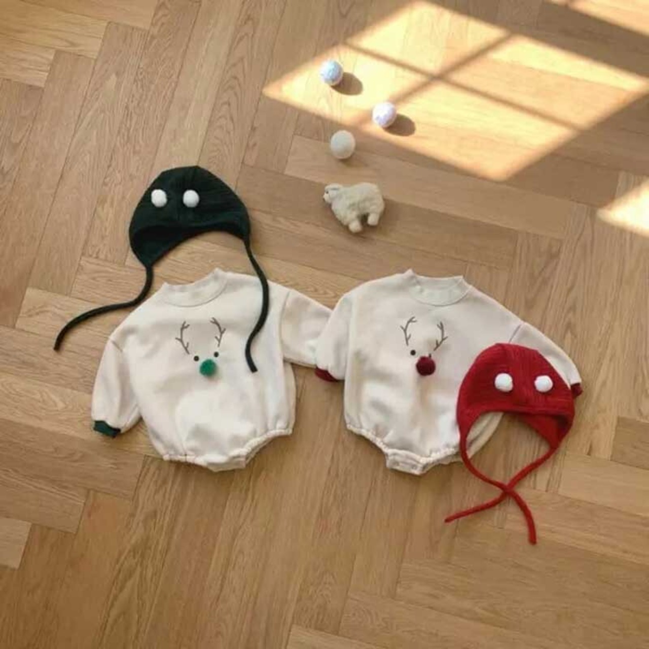 ins 子供服 クリスマス 赤ちゃん ロンパース 帽子付き サンタ服 ベビー服 トナカイ 可愛い