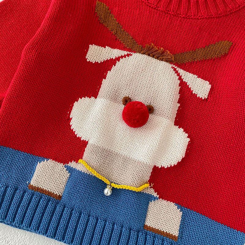 秋冬新作 ユニセックス 子供服 ニット プルオーバー セーター クリスマス 鹿 ポンポン パール 上着 66-100