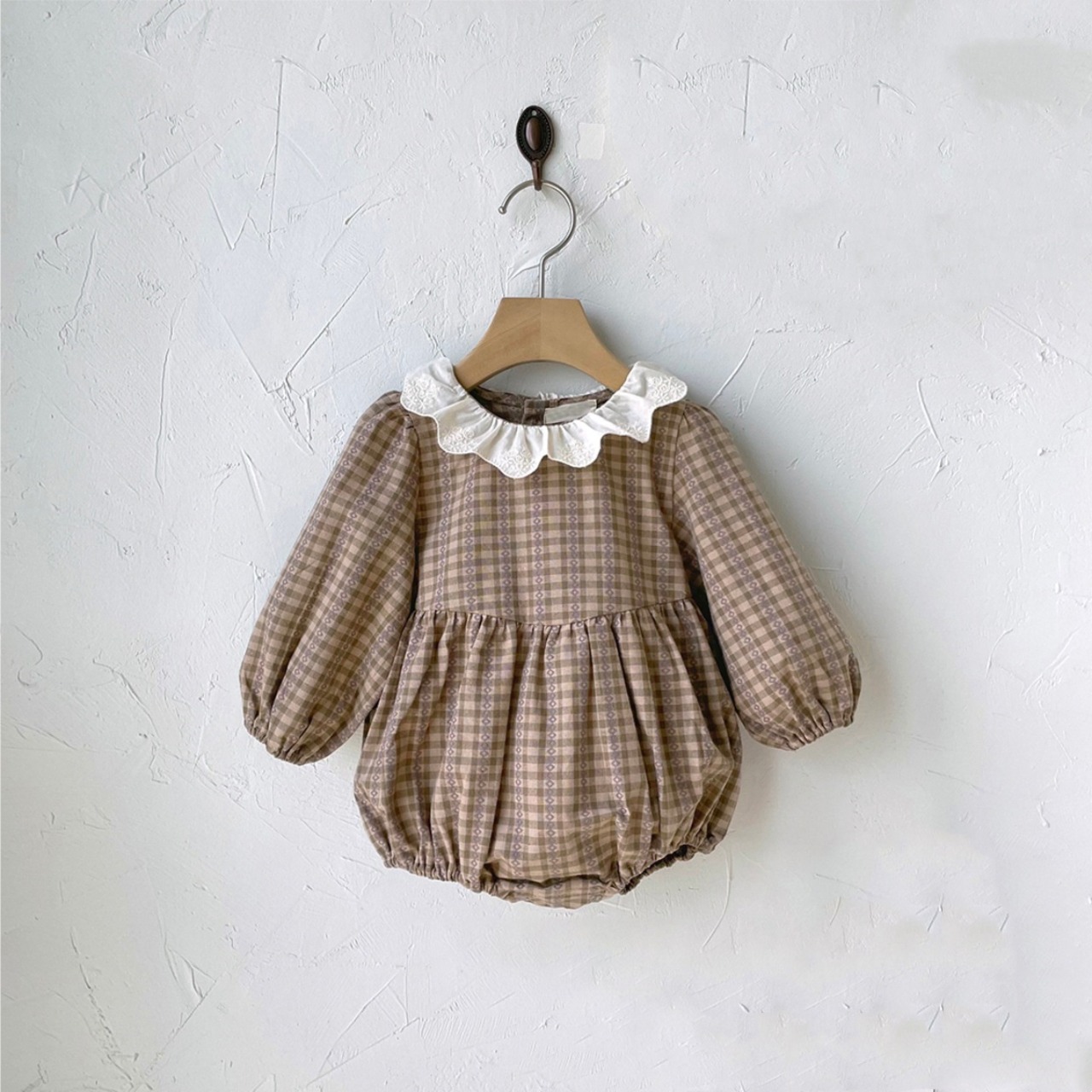 2023秋新作 ベビー服 女の子 レース ロンパース ワンピース 2タイプ 子供服 可愛い チェック柄