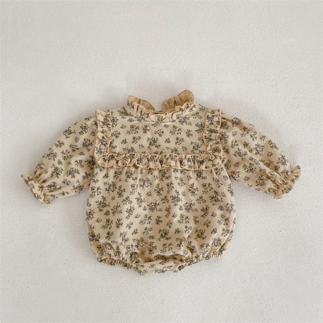 2023秋新作 ベビー服 女の子 ロンパース 長袖 花柄 フリル 立ち襟 カバーオール 可愛い おしゃれ