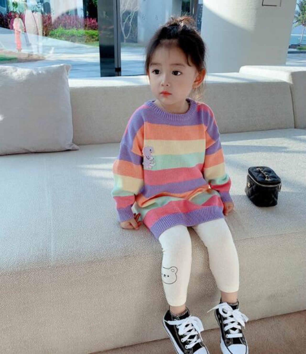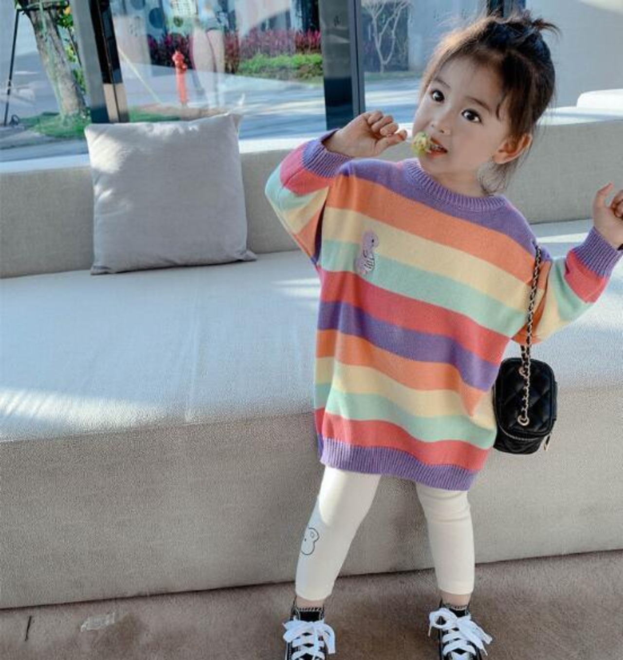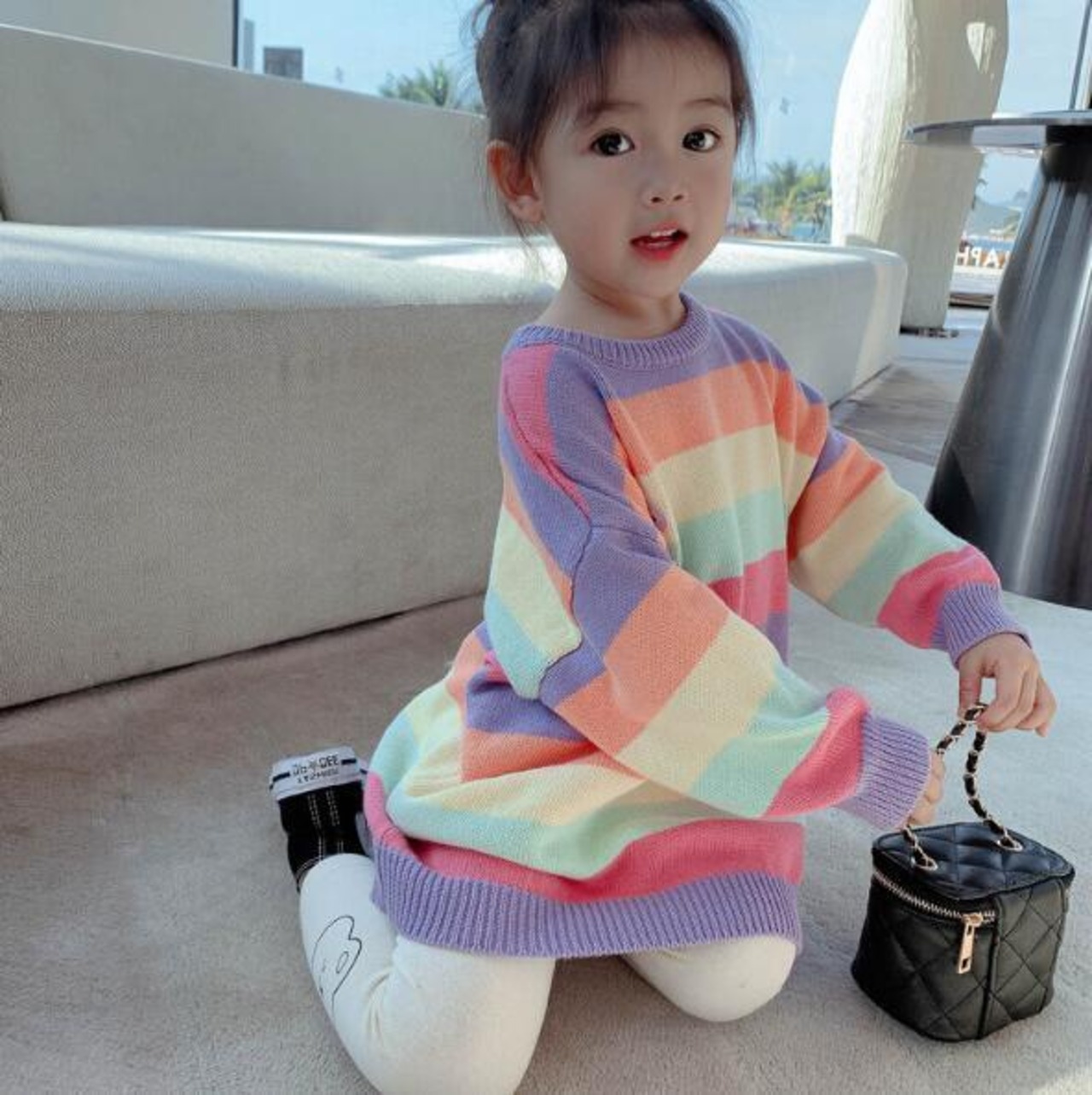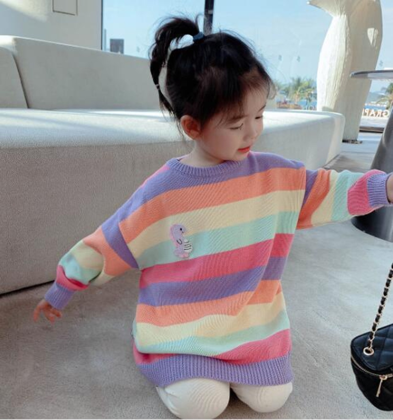 虹ワンピース 子供セーター ボーダー 秋冬キッズ 韓国ファッション 子供服 子供服 トップス ニット